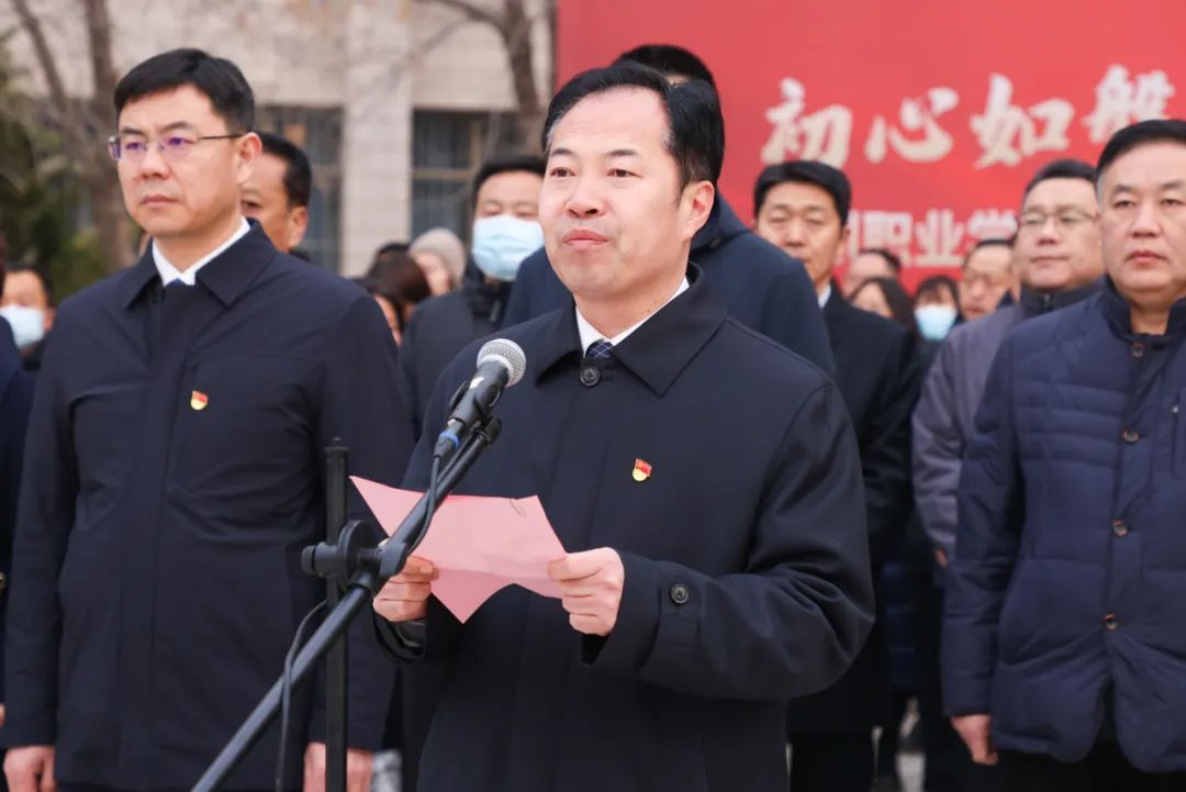 党委书记刘荩一出席活动并讲话,党委副书记、院长申保忠主持仪式。党委副书记范克志,党委委员、副院长宣永华,党委委员、滨州应用科技研究院院长胡洪涛,副院长李明月,党委委员、副院长王进博,党委委员、宣传部部长杨玉梅,党委委员、组织人事部部长李超出席活动。副县级以上干部、直属部门主要负责人,全校学团管理人员、教育学院全体师生参加活动。