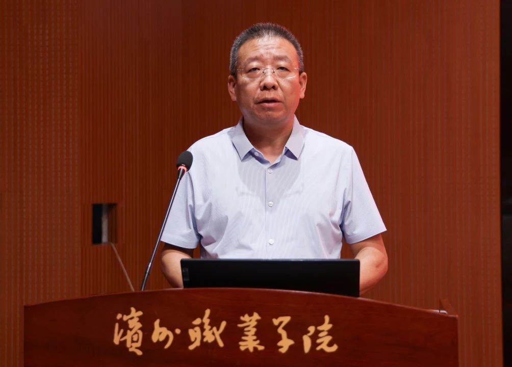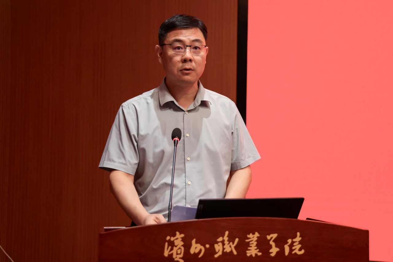 为深入贯彻学校年度重点工作部署要求,全面落实各项既定目标任务,切实推动工作提质增效,7月10日下午,滨州职业学院组织召开2025年“亮进度”述职会议。党委书记刘荩一出席会议并讲话。党委副书记、院长申保忠主持会议。党委副书记范克志,党委委员、滨州应用科技研究院院长胡洪涛,党委委员、副院长王进博,党委委员、纪委书记、监察专员吕海霞,党委委员、组织人事部部长李超出席会议。