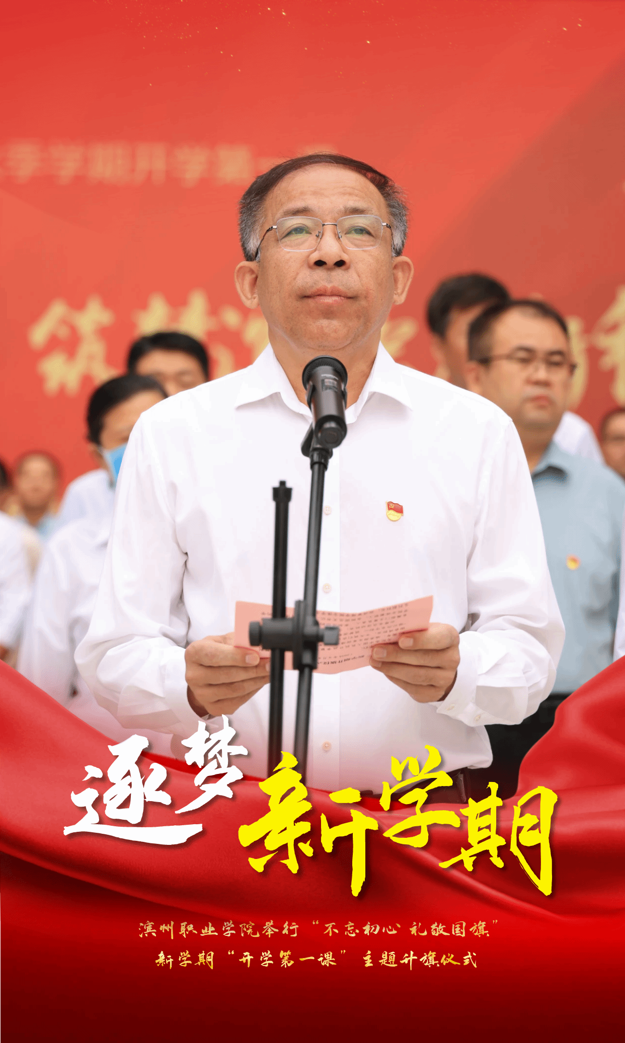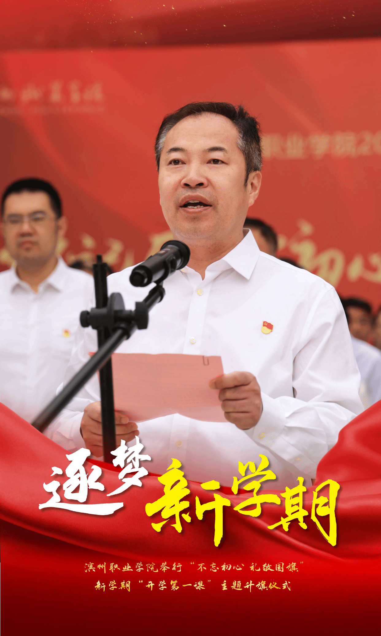金秋送爽,丹桂飘香。在纪念中国人民抗日战争暨世界反法西斯战争胜利80周年之际,9月8日清晨,滨州职业学院举行“不忘初心 礼敬国旗”新学期“开学第一课”主题升旗仪式。党委书记刘荩一出席仪式并致辞,党委副书记、院长申保忠主持仪式。校领导、副县级以上干部及师生代表共同肃立,在晨光中开启新学期的爱国主义教育第一课。